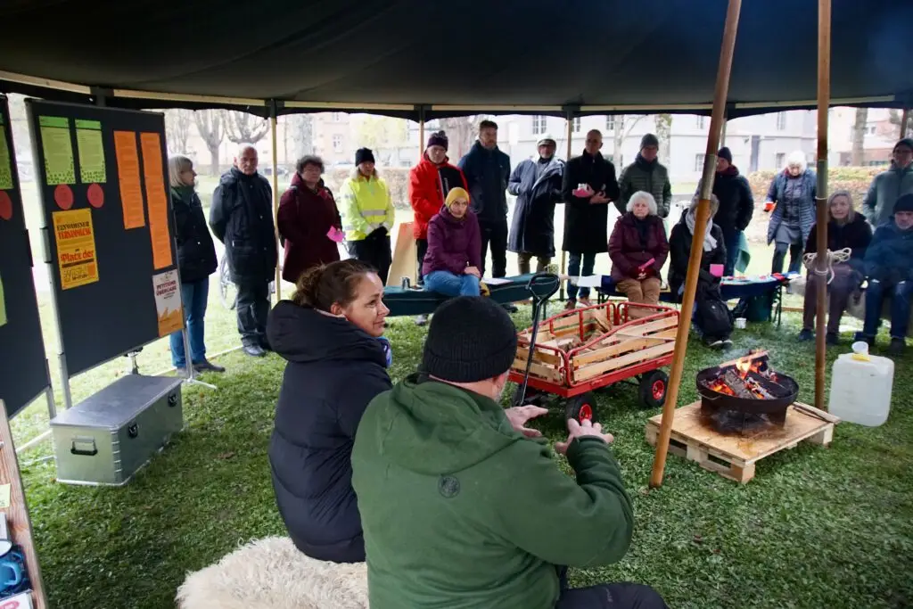 Am 16. November 2024 fand die Einwohnerversammlung der Konferenz für Urban Transformation Design (KfUTD) im Park „Platz der Verfassungsfreunde“ in Offenburg statt. Etwa 40 Teilnehmende kamen zusammen, um zentrale Anliegen der Stadt zu diskutieren. Trotz der kühlen Temperaturen bot der Veranstaltungsort eine einladende und gemütliche Atmosphäre, die durch eine gut durchdachte Gestaltung unterstrichen wurde.
