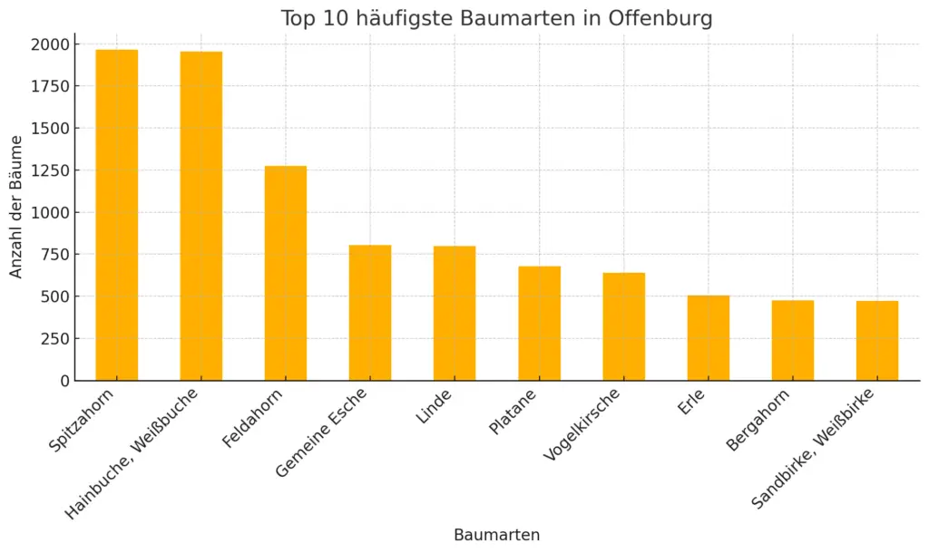 Die häufigsten Baumarten im Offenburger Stadtgebiet zeigen eine große Vielfalt, wobei einige Arten besonders prägend sind: